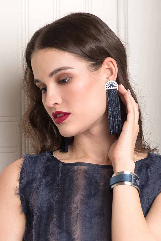 Mini fringe ▪ lakk petrol ▪ fülbevaló